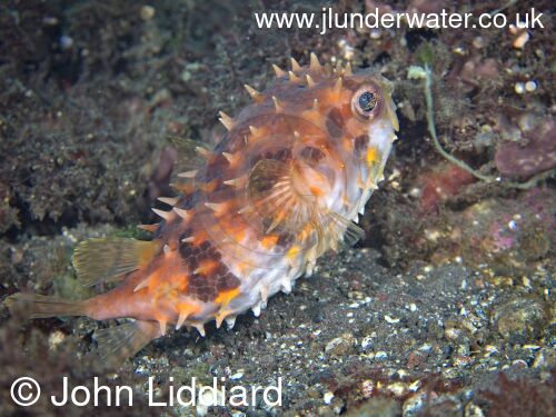 Bali, Indonesia. Alam Anda Resort. Sidem Macro Point. Porcupine puffer fish. https://www.diveworldwide.com. https://alam-anda.com/